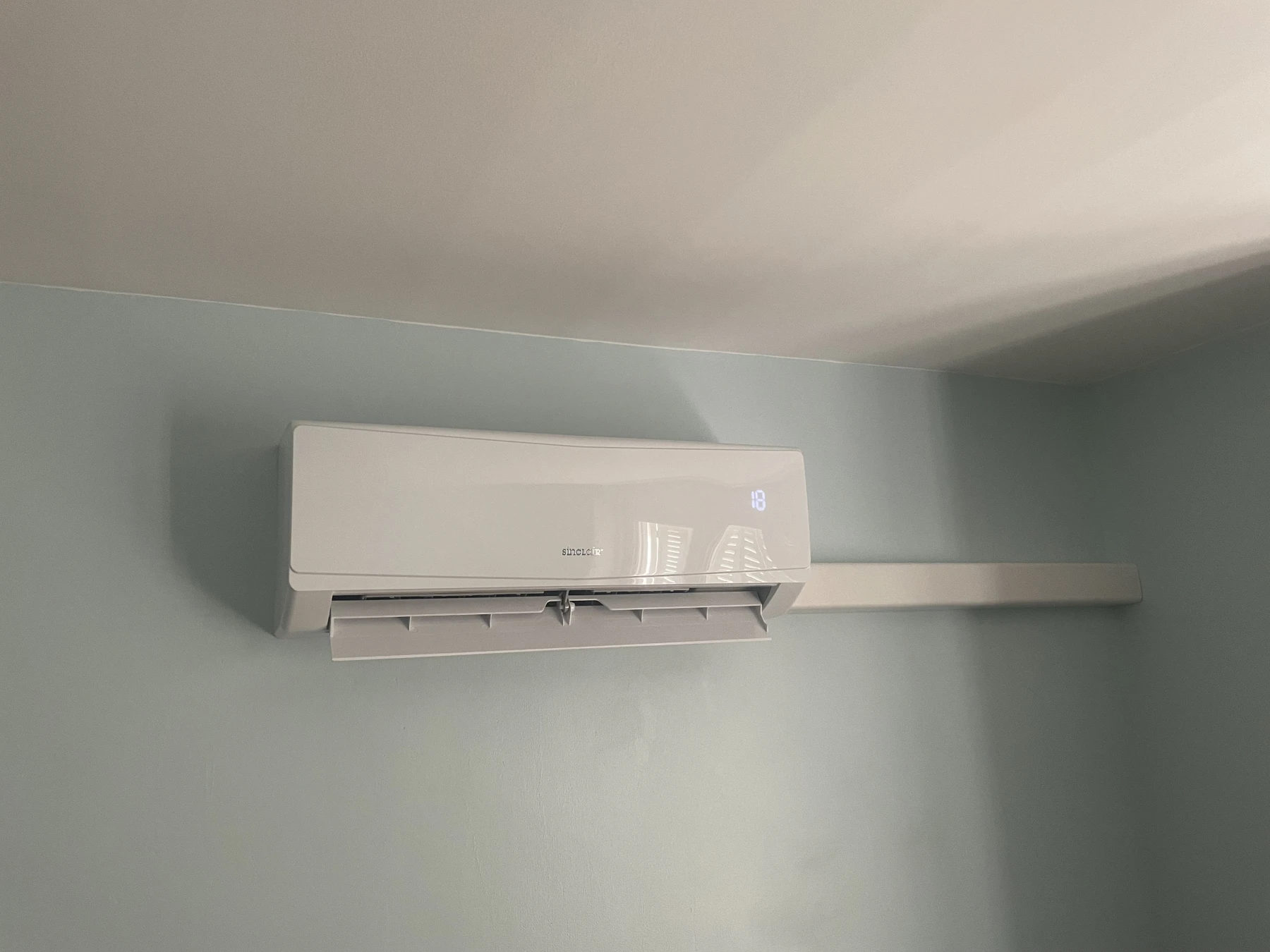 La pompe à chaleur réversible installée est un modèle SINCLAIR, reconnu pour sa performance et sa fiabilité. Ce système de climatisation permet de chauffer efficacement en hiver et de rafraîchir agréablement en été, tout en offrant des économies d'énergie notables grâce à sa technologie éco-responsable.